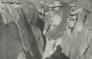At every post a sentry stood on guard, peering out over the parapet into the shadows of No Man’s Land, while the remainder, who were not employed on fatigue, patrol, wiring or listening post, tried to sleep on the firing step. After giving the counter-sign at each post the Skipper stepped up alongside its sentry and chatted with him in low tones for a few moments.