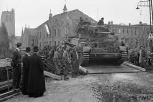 A Challenger tank crosses a Bailey bridge © IWM B 11374
